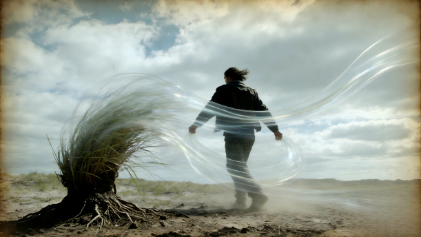 这首短诗借风喻世,在具象与抽象的交织里,把平凡生命的韧性、精神传承的重量揉进了轻轻的风声里。开篇那句“人和一棵草有什么不同”,一下子就把视角拉到了最朴素的生命对照里:草扎根泥土,任狂风卷扫枝叶都能守得住根本,而人在时代的风里辗转漂泊,常常被生活揉得乱了脚步,连原本笃定的话语都失了从容,这不就是我们多数人都曾有过的处境吗?被命运的风吹得身不由己时,我们甚至不如一棵枯树从容。诗里写“一棵光秃秃的树,在风中坚持,等待可能飘回来的叶子”,没有叶子的树本是萧瑟的,可在同一场风里,它挺着枝干站着的样子,比参禅悟道的菩提树还要空灵——这份空灵不是虚无,是明知风烈、未知叶归依然不肯弯腰的坚持,是普通人在磨难里守住的那一点心气,比刻意修出来的境界更动人。