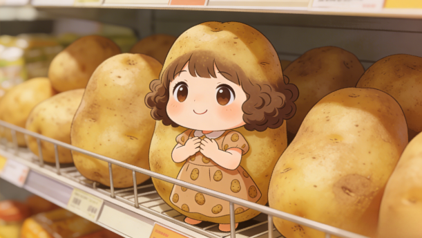 土豆姑娘还在地里长个的时候就爱抱怨:“地下太黑了!什么时候可以离开这鬼地方!”有一天,农民把土豆姑娘挖了出来,啊,阳光耀眼得刺痛了眼睛,可是土豆姑娘兴奋得不得了,她坐上大卡车,被送进超市,摆放在货架上。可是没过多久,她又开始生气了,因为别的土豆把她压在下面,顾客来选购时总是轮不到她。