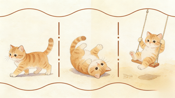 小猫满月的时候更可爱,腿脚还不稳,可是已经学会淘气。一根鸡毛,一个线团,都是它的好玩具,耍个没完没了。一玩起来,它不知要摔多少跟头,但是跌倒了马上起来,再跑再跌。它的头撞在门上,桌腿上,撞疼了也不哭。它的胆子越来越大,逐渐开辟新的游戏场所。它到院子里来了。院中的花草可遭了殃。它在花盆里摔跤,抱着花枝打秋千,所过之处,枝折花落。你见了,绝不会责打它,它是那么生气勃勃,天真可爱!