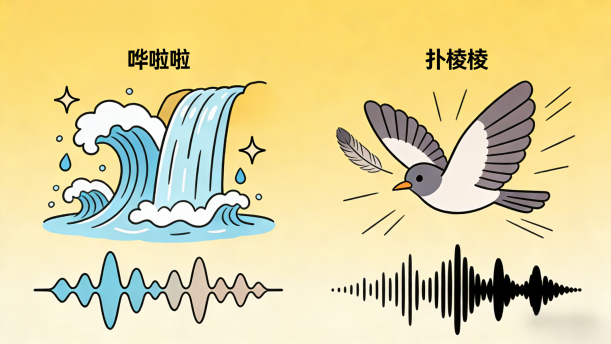练习:扑棱棱 唰啦啦 嘎吱嘎吱 咕咚咕咚