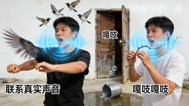 在模仿象声词时,可联系现实生活中的真实声音,体会现实生活中这些声音的准确动听,让学生体会只有共鸣过后的声音才会好听。