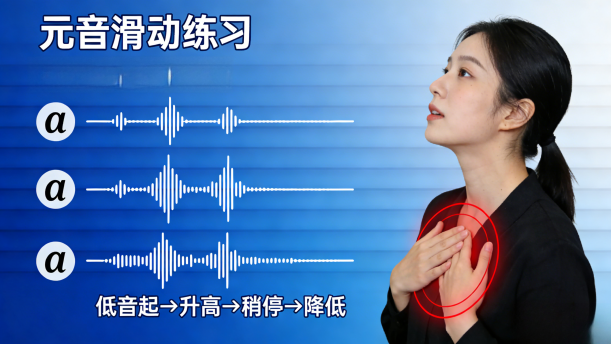 从高音区开始,声音要清晰、圆润,然后平稳地向低音区滑动,过程中仔细感受胸腔的振动变化。当滑动到某个音高时,若手按在胸腔处能明显感觉到持续且有力的振动,说明该音区是胸腔共鸣较为集中的区域。此时,应在这个音区反复进行延长音练习,比如将“e”或“i”音拉长至8-10秒,同时保持口型的稳定和气息的连贯,让胸腔的振动感逐渐增强并稳定下来。通过这样有针对性的分段练习,帮助学生逐步掌握胸腔共鸣在不同元音发音中的运用,提升语音的厚重感和穿透力。