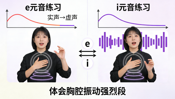 在进行“e”与“i”的长音练习时,需注意气息的稳定支撑,避免因气息不足导致声音颤抖或中断。发音时,身体保持直立,双肩放松,小腹微收,让气息均匀地从肺部呼出,带动声带振动。