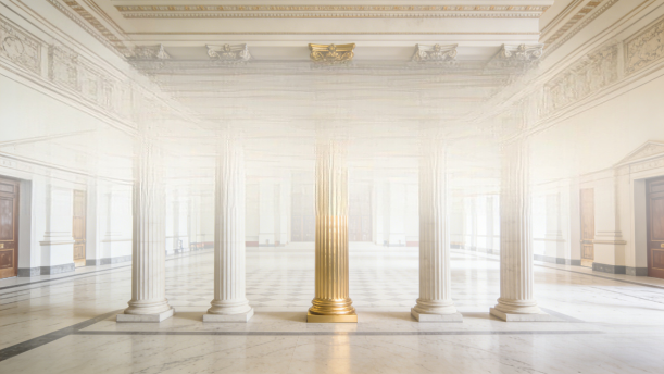 莱伊恩自信只要一根坚固的柱子足以保证大厅安全,他的“固执”惹恼了市政官员,险些被送上法庭。他非常苦恼;坚持自己原先的主张吧,市政官员肯定会另找人修改设计;不坚持吧,又有悖自己为人的准则。矛盾了很长一段时间,莱伊恩终于想出了一条妙计,他在大厅里增加了四根柱子,不过这些柱子并未与天花板接触,只不过是装装样子。