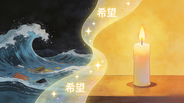 蜡烛可以在黑夜里给我们带来光亮,它也寓意着希望。而洪水是一种自然灾害,有些人可能会在洪水中丧命。洪水来了,切断了所有的电,这时候蜡烛就派上了用场,它也为处于灾害中的人民带来了一丝希望。