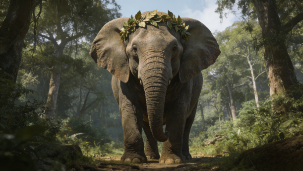 森林里要开选美大会,德高望重的大象被选作大会的主席。