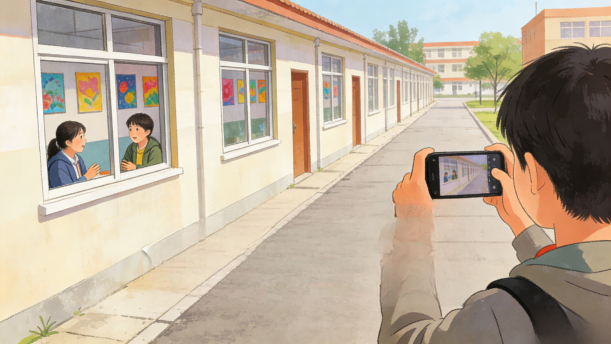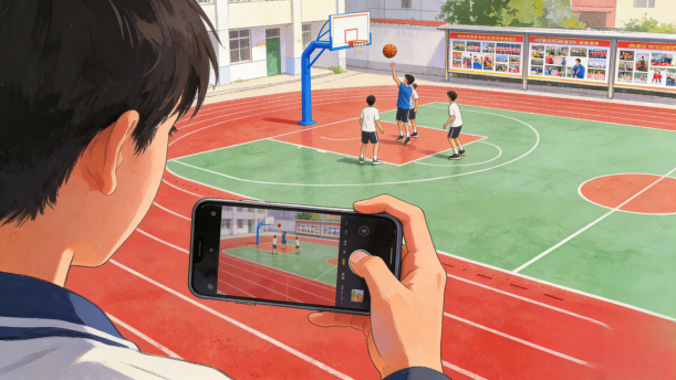 刚开始练习时,可以先从直线移动拍摄开始,比如沿着操场的跑道匀速行走,镜头保持平稳地从左至右或从远及近扫过。描述时,先说出自己当前的移动状态,例如“现在我正沿着操场的红色塑胶跑道向前走,镜头慢慢转向操场中央”,然后按照画面出现的顺序依次描述:“首先映入眼帘的是操场边缘修剪整齐的绿色草坪,草叶上还挂着几滴清晨的露珠,在阳光下闪闪发亮;草坪往里,是一大片黄褐色的沙土场地,那是同学们上体育课练习跳远的地方,沙坑边缘的白色石灰线有些模糊了,但依然能看出大致的轮廓;再往前,靠近教学楼的一侧,摆放着一排蓝色的健身器材,有单杠、双杠和秋千,其中一个秋千还在微微晃动,像是刚刚有人使用过。”