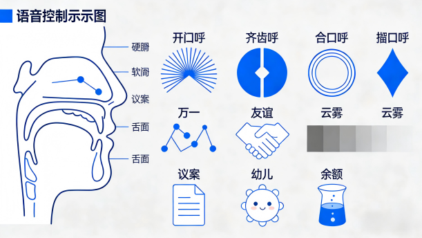 撮口呼零声母:以隔音字母y(yu)开头,实际发音有轻微摩擦,如yu、yue、yuan、yun、yong。