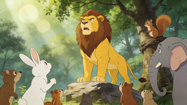 狮子想找一个动物接替他做“万兽之王”。于是,他宣布:“从现在开始,你们轮流当‘万兽之王’,每个动物当一个星期。谁做得最好,谁就是森林里的新首领。”