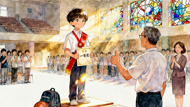 叫我了,我赶紧伸手去口袋拿参赛证。蓦地,我摸到一张纸条。妈妈写的!