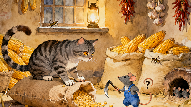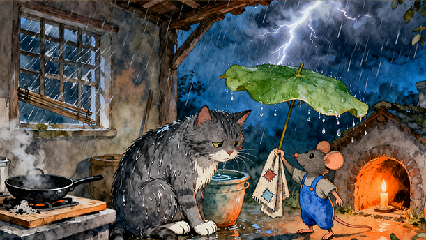 从前,有一只猫结识了一只老鼠。猫一再说它多么爱老鼠,愿意跟它做朋友。老鼠终于同意和它住在一间屋里,共同生活。