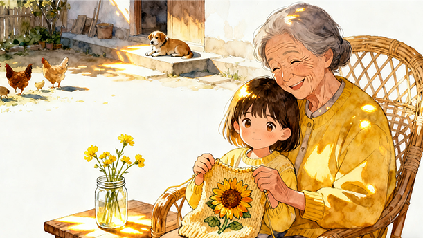 奶奶看着鹿儿的表情,高兴极了,安慰她说:“我的好宝宝,不要担心,阳光都跑到你心里去了。”