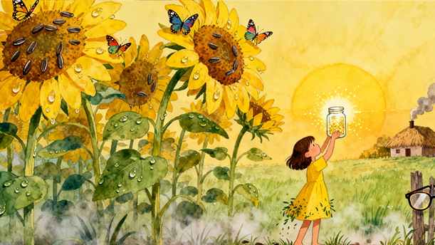 “奶奶,奶奶,我从田野里给您带来礼物了,你瞧,这里面是阳光。”