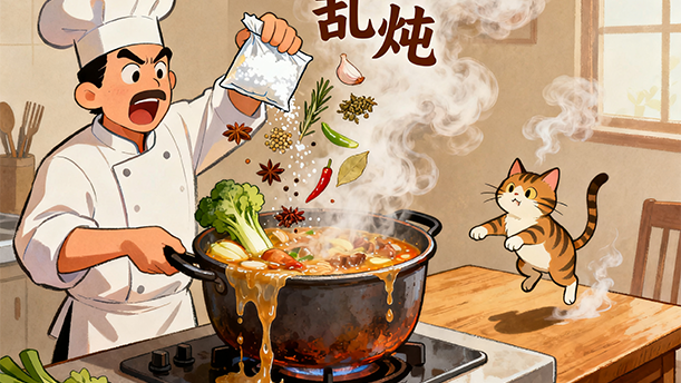 于是这个人就又抓了一把盐放进锅里,但他还是没有觉察到自己究竟在哪里出了差错,仍旧还是去尝勺里的汤。勺里的汤自然还是淡的,他就又以为锅里的汤还是不够味儿,于是又往锅里拼命加盐。