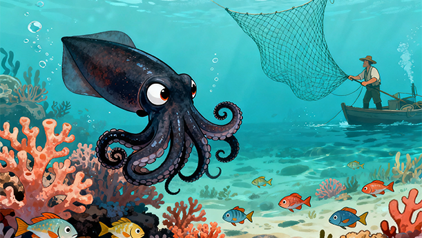 被抓到的墨鱼后悔不已,它怎么也没想到,自己引以为傲的护身法宝,这次非但没帮上忙,反而暴露了自己的行踪。它拼命挣扎,想要挣脱渔网,可一切都是徒劳。老渔人看着网里乱动的墨鱼,笑着对儿子说:“这墨鱼啊,就是太自作聪明了,以为放点墨汁就能藏住自己,哪知道这墨迹反而成了它的‘追踪器’。”墨鱼听着老渔人的话,心里又羞又恼,可也无可奈何,只能暗暗责怪自己不该那么得意忘形,要是当初不那么沾沾自喜,或许就不会落得这样的下场了。