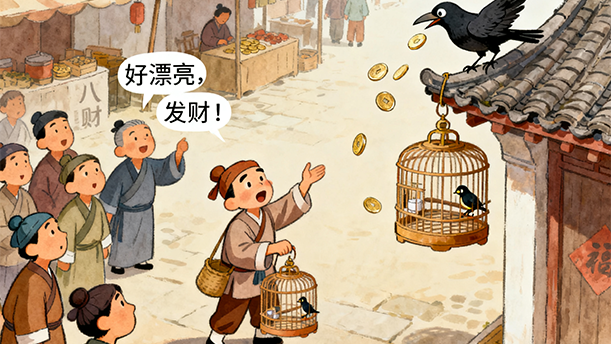 寒鸦笑了,说道:“喜鹊因为在树上筑巢,所以害怕风吹,畏惧老虎。可是你们住在山洞里,跟老虎完全井水不犯河水,一点儿利害关系也没有,为什么也要跟着乱叫呢?”