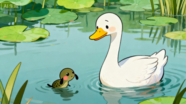 鉴赏:《骄傲的青蛙》是一篇极具教育价值且充满童趣的童话故事。它以简洁生动的语言塑造了鲜明的角色,骄傲自大的青蛙、直率理性的小蝌蚪、温和权威的白鹅大婶,通过他们之间的对话推动情节发展,从青蛙嘲讽蝌蚪,到蝌蚪反问使其产生动摇,再到白鹅大婶证实事实,最终青蛙惭愧道歉,整个过程层层递进,充满画面感。 故事的语言通俗易懂,对青蛙神态、动作的描写十分形象,如“骄傲地呱呱叫”“瞪着大眼睛”“低下头”等,让角色跃然纸上,同时口语化的对话充满童趣,很适合儿童阅读。