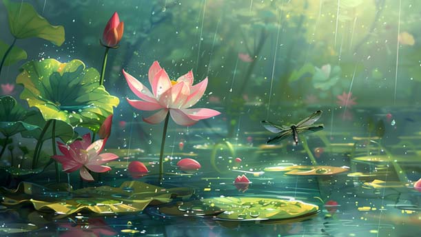 朗诵提示:作者以丰富的想象力,用文字绘出了一幅表现荷花姿态各具、色彩明艳、清新脱俗的水彩画,表达了对大自然真挚的情感。甚至自己渐渐入迷,变身成为一朵荷花来一起装扮大自然,进而把热爱自然、保护自然的意识提升到一个更高的境界。朗诵这篇短文要有一种陶醉感、幻觉感,语速和缓、语气愉悦,声音充满柔情。