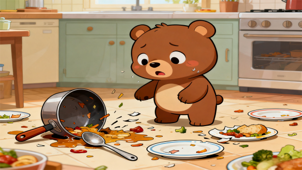 小熊小熊真叫馋 ,踩着椅子爬上桌。