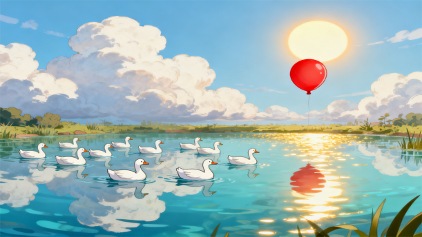 白云倒映在池塘里,像一群白鹅。太阳倒映在池塘里,像一只鲜红的气球。月牙倒映在池塘里,像一只弯弯的小船。