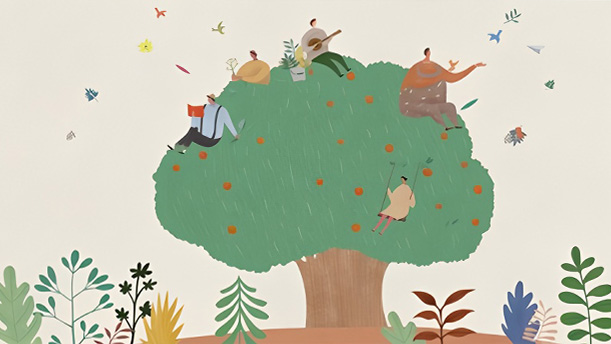 从语言风格来看,诗歌兼具“明快流畅”与“质朴真挚”的特点,契合儿童的阅读与情感接受习惯。全诗以短句为主,如“领巾红得太鲜艳”“千朵莲花水面开”“海面也有千朵浪花漂”,句式简洁有力,读起来朗朗上口;同时,语言直白质朴,没有复杂的修辞与晦涩的词汇,无论是“脱了衣裳跳下海”的生活化描写,还是“我们脸上有千朵笑”的童真表达,都像孩童的心声自然流露,充满真实感。此外,“红”“花”“云霞”“莲花”“浪花”等意象多为明亮、美好的事物,与“快活”“慈爱”“笑”等情感词相搭配,进一步强化了诗歌积极向上的基调。