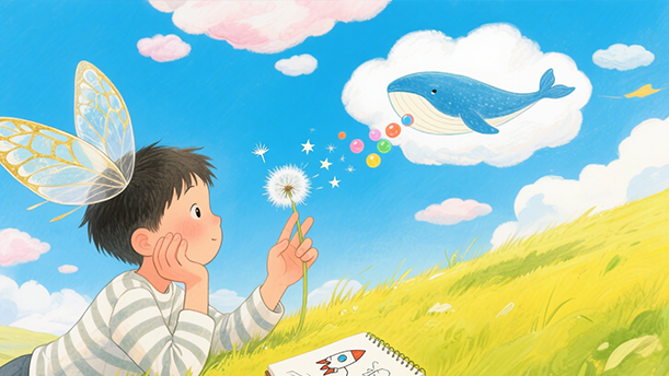 《我想》是一首想象丰富,天马行空的小诗。诗中的"悠呀,悠”“长呀,长”“望呀,望'“我会飞呀,飞“虽旬式相同但语言处理上应有变化。最后一句“飞到美丽梦想的天堂……”以省略号结尾,给人意犹未尽之感。在朗诵时,为体现这样的意味,声音可适当拖长。