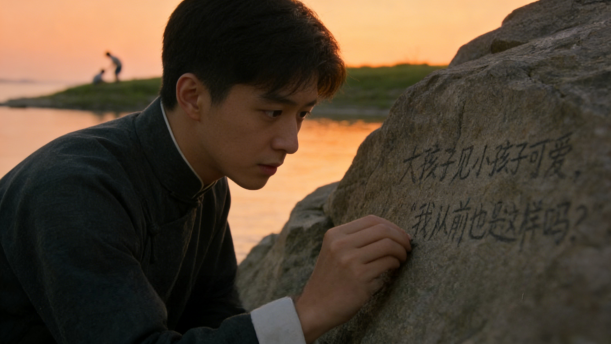 水边人想在岩上刻几行字迹:大孩子见小孩子可爱,问母亲“我从前也是这样吗?”母亲想起了自己发黄的照片堆在尘封的旧桌子抽屉里,想起了一架的瑰艳藏在窗前干瘪的扁豆荚里叹一声“悲哀的种子!”“水哉,水哉!”沉思人叹息古代人的感情像流水,积下了层叠的悲哀。