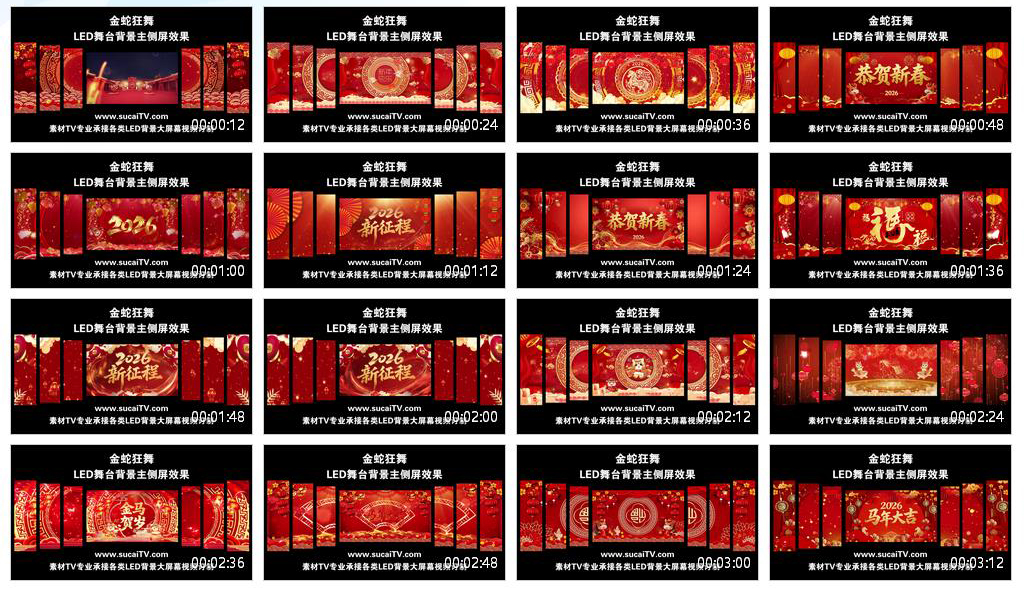 当前位置:首页 > 主侧屏成片 > 喜庆节日 > 金蛇狂舞 马年 2026年 主侧屏春节元旦除夕年会舞蹈开场通用LED背景大屏幕视频素材TV