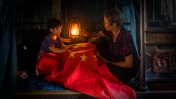 当红旗在大家眼前出现时,几只拿着针线的手,团团围了上来