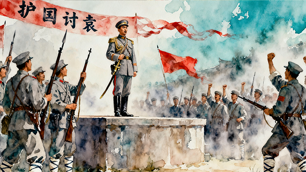 孙中山(1866—1925),名文,字逸仙,广东香山(今中山)人。1905年在日本成立中国同盟会,被推为总理,确定“驱除鞑虏,恢复中华,建立民国,平均地权”的资产阶级革命纲领,提出三民主义学说。在国内外发展革命组织,多次发动武装起义。1911年10月10日,武昌起义爆发,孙中山被17省代表在南京推选为中华民国临时大总统,1912年2月13日,因革命党人对袁世凯妥协,被迫辞去大总统职务。1915年12月,袁世凯复辟帝制,孙中山在日本发表了这篇《讨袁宣言》,在全国掀起了反袁斗争高潮。袁世凯在一片唾骂声里,只做了83天皇帝,就一命呜呼了。