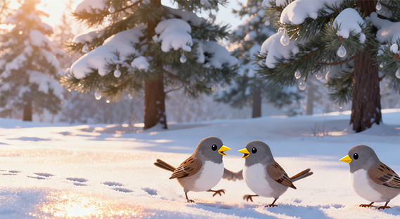此诗视角独特,观察细腻,画面感强。作者把目光投入世人容易忽视和蔑视的麻雀,体现了对微小事物的珍视和赞美,诗歌灵动而有活力。伟大往往蕴含于平淡当中,表达了一种积极向上的蓬勃力量。朗诵时,要注意全诗内在贯穿的情感。第一、第二小节以舒缓的节奏表达对麻雀的关注。第三小节有转折的韵味,节奏可以适当加快,尤其是“叽喳叽喳叽叽”,表达得生动而喜悦;第四小节情节富有画面感,要用动感、富有音乐感的语调读出“小音符”奏出“交响乐”的美好场景,给人余音缭绕的韵味。第五节是情感的升华,朗诵时要清脆、激越、昂扬向上,表达出对“麻雀”这一小群体的赞美之情。