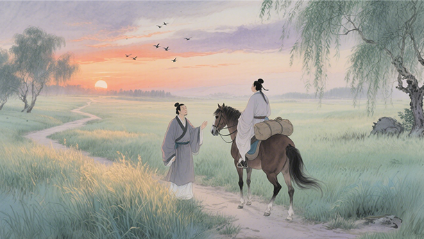 从深层意蕴来看,这首诗虽以“草”为核心,却暗含“送别”的题旨。古原是送别之地,而野草的“一岁一枯荣”,恰如人生的聚散离合——离别虽如野草的“枯”般令人怅惘,但“春风吹又生”的韧性,也暗示着情谊不会因离别而断绝,正如野草不会因野火而消亡。这种将“送别之情”与“生命之理”相融的写法,让诗歌超越了单纯的咏物或送别,多了一层对生命与情感的哲思:离别是暂时的,正如枯萎是暂时的,而生命的力量、情感的联结,终将如野草般在时光中重获新生。