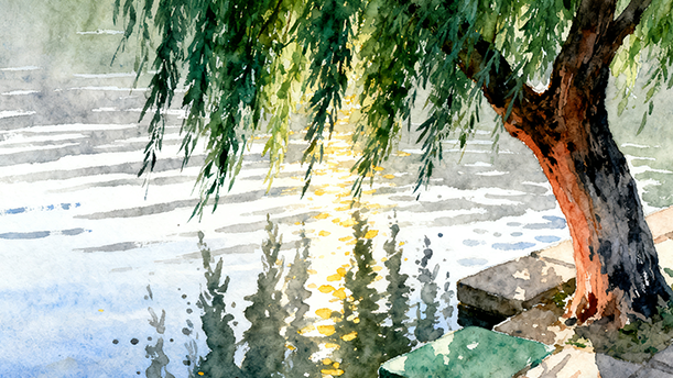 开篇“泉眼无声惜细流”,以拟人化的笔触写小池的源头,瞬间让“泉眼”有了性情。“无声”二字先定调,写出泉眼流水的轻柔——不是奔涌的激流,而是细缓的涓涓细流,透着初夏的静谧;“惜”字是句眼,将泉眼拟人化:它仿佛懂得爱惜这股细流,舍不得让它快速流逝,于是缓缓流淌,这份“惜”既有对细流的珍视,也暗含诗人对这份“细柔之美”的偏爱。这一句没有写“大”,却从“泉眼惜流”的微小细节里,读出初夏的温柔与宁静,让小池的源头有了情感温度。