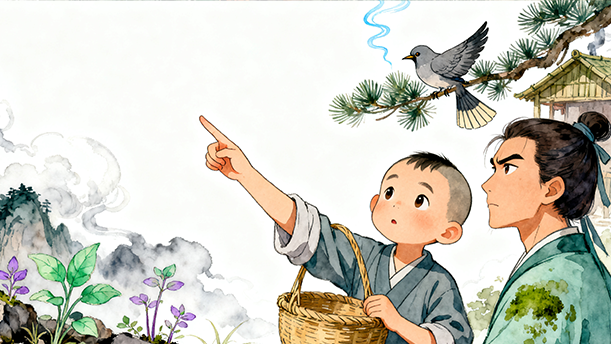 开篇“松下问童子”,以极简的场景切入,却暗藏画面的清幽与心境的轻快。“松下”二字先设定了环境——苍松之下,自带隐士居所的清雅幽静,仿佛能想见松针苍翠、光影斑驳的画面;“问童子”则点明人物与动作,诗人寻隐者未见,转而向其弟子问询,动作间透着礼貌与期待。此时的诗人尚满怀希望:既已找到隐者的居所附近,见到其弟子,想来与隐者相见不远。朗诵时需带出这份“轻快感”,语气可稍显平和上扬,传递出诗人初见童子时的从容与期待,让“松下问语”的画面如在眼前。