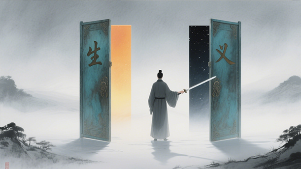 在朗诵过程中,对于“生亦我所欲,所欲有甚于生者,故不为苟得也;死亦我所恶,所恶有甚于死者,故患有所不辟也”这类语句,要带着一种坚定且严肃的意味,将孟子对于生死抉择的深刻思考通过声音传达出来。当读到“如使人之所欲莫甚于生,则凡可以得生者,何不用也?使人之所恶莫甚于死者,则凡可以辟患者,何不为也”这样的反问句时,语气要适当上扬,强调出反问的力度,突出孟子对那种只追求生存而不顾道义行为的质疑。而像“一箪食,一豆羹,得之则生,弗得则死,呼尔而与之,行道之人弗受;蹴尔而与之,乞人不屑也”这部分,要以一种较为平缓却又不失坚定的节奏去朗诵,展现出即便面临生死抉择,人们也不会因为一点微薄的利益而丧失尊严和道义。对于“万钟则不辩礼仪而受之,万钟于我何加焉”等句子,要带着一种不屑和批判的意味,体现出孟子对那些为了荣华富贵而抛弃本心之人的谴责。