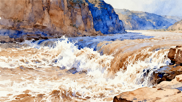 “峰峦如聚,波涛如怒”两句,以拟人的笔法将潼关的险峻写得极具张力——“峰峦如聚”写群山的簇拥:潼关周围的山峦仿佛主动聚拢,形成天然屏障,“聚”字透着“势不可挡”的雄浑,既写实山势的密集,更暗喻“天下英雄在此汇聚”的历史厚重;“波涛如怒”写黄河的汹涌:流经潼关的黄河水奔腾咆哮,如含怒奔涌,“怒”字不仅写水声的轰鸣、水势的湍急,更似在暗喻“历史洪流中潜藏的动荡与纷争”。这两句没有写“人”,却让“山”与“河”都染上“历史的情绪”,仿佛山河本身就是千年兴亡的见证者。朗诵时需以“雄浑有力”的语调开篇,“聚”“怒”二字重读,气息饱满,模拟山峦簇拥的厚重与黄河奔腾的激昂,让听者瞬间感受到潼关“一夫当关,万夫莫开”的雄奇气势。