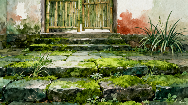 “苔痕上阶绿,草色入帘青。谈笑有鸿儒,往来无白丁”,从“写德”转向“写境”,通过描写陋室的环境与往来之人,具象化“德馨”的内涵,让“陋室不陋”有了实景支撑。“苔痕上阶绿,草色入帘青”写陋室的自然之雅——台阶上蔓延着翠绿的苔痕,青草的绿意透过门帘映入室内,没有雕梁画栋的华丽,却有“苔痕”“草色”的生机,这份“野趣”恰显居住者不慕奢华、亲近自然的淡泊;“谈笑有鸿儒,往来无白丁”写陋室的人文之雅——与作者谈笑的都是学识渊博的学者(“鸿儒”),往来的没有目不识丁的俗人(“白丁”),“无白丁”不是傲慢,而是对“志同道合”的追求,暗喻作者不与腐坏官场、世俗小人同流合污的志气。朗诵时需语调轻快却不失雅致,“苔痕”“草色”二句读得清新,传递自然生机;“鸿儒”“白丁”二句读得从容,显文人风骨,避免刻意清高,却让“陋室的雅”自然流露。