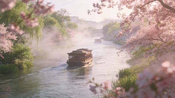 赏析:这首《黄鹤楼送孟浩然之广陵》,以春日送别为底色,写尽了深情却不落伤感。开篇“故人西辞黄鹤楼”点出送别地点,“烟花三月下扬州”随即铺开江南春景——三月的繁花如烟似雾,既衬出扬州的烂漫,也让离别的氛围裹上了温柔的暖意。