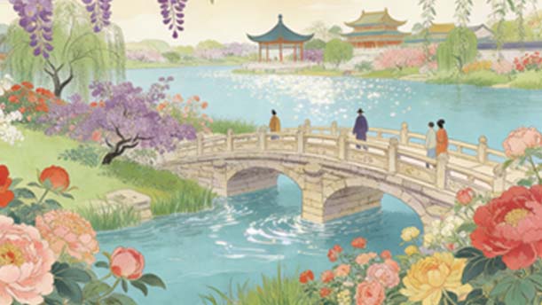 赏析:《春日》是朱熹以春景写理趣的佳作,开篇“胜日寻芳泗水滨,无边光景一时新”先铺展明快的春日出游画面:晴好的日子里到泗水之滨寻赏春景,满眼风光都因春日而焕然一新,鲜活的“新”字,把春回大地的蓬勃感写得扑面而来。