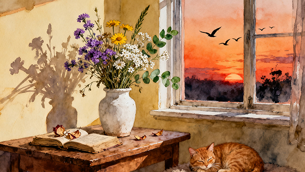 兔爷爷老了,每天静静地望着窗外,望着白云,望着山崖。小白兔怕免爷爷寂寞,每天给兔爷爷的桌上插上一枝鲜花。今天是菊花,明天是杜鹃花,后天是玫瑰花……