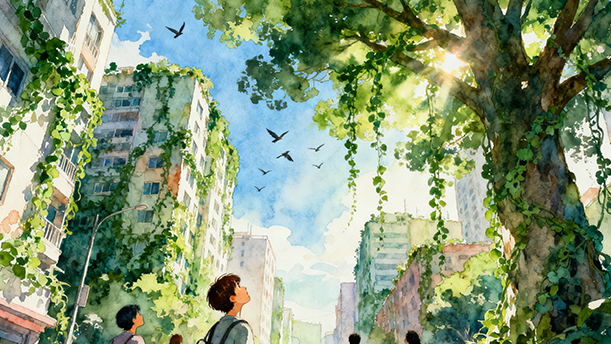 如果城里的人都种爬山虎,所有的房子就会变成一座森林。