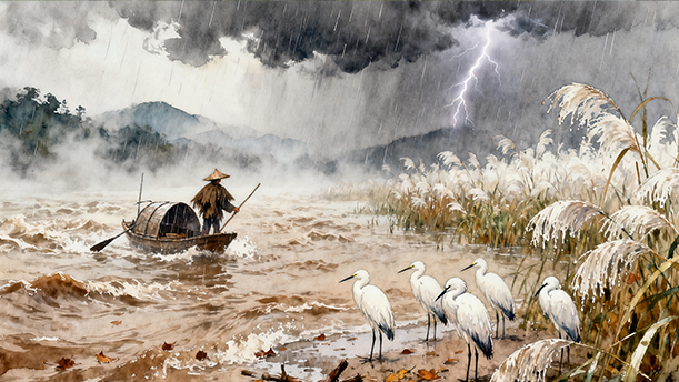 天地是暗沉沉的,像古老的住宅里缠满着蛛丝网的屋顶。那堆在天空上的灰白色的云片,就像屋顶上剥落的白粉。在这古旧的屋顶的笼罩下,一切都是异常的沉闷。园子绿翳翳的石榴、桑树、葡萄藤,都不过代表着过去盛夏的繁荣,现在已成了古罗马建筑的遗迹一样,在潇潇的雨声中瑟缩不宁,回忆着光荣的过去。