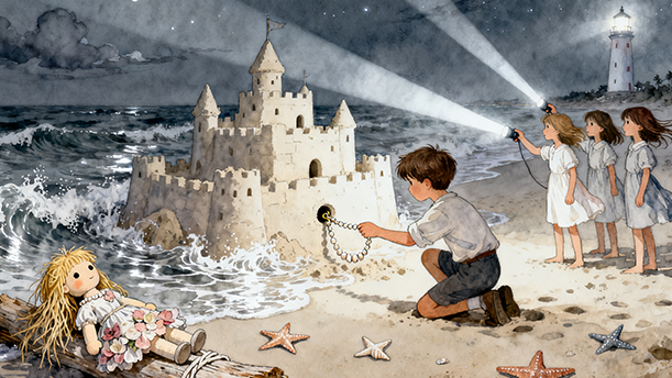 我们在沙堆上垒起城堡,城堡周围筑起围墙,围墙外再插上干树枝——那是我们的树。不知谁说了一句:“这城堡里住着一个凶狠的魔王。”接着又有人补充:“他抢去了美丽的公主!”第三个小伙伴说:“你们快听,公主在城堡里哭呢!”就这样,我们编织着童话。