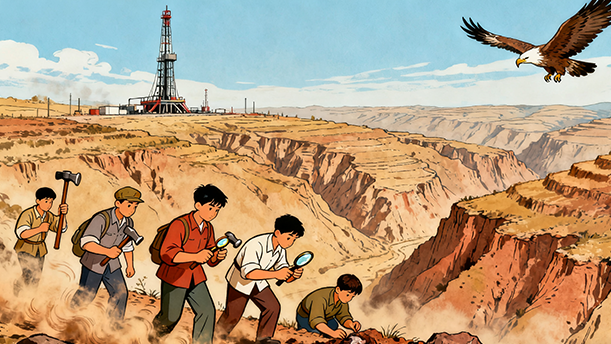 “破旧的老水车”“熏黑的矿灯”:“老水车”在河边运转数百年,纺出的是“疲惫的歌”,象征祖国在漫长历史中延续的生存韧性;“矿灯”熏黑如“额上”的印记,照亮的是“历史隧洞”中的“蜗行摸索”,既写出了探索之路的艰辛,也暗喻祖国在黑暗中从未停止前行的脚步。