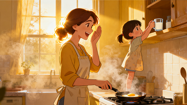 “浪花与大河”“雨滴与云朵”:浪花源于大河,雨滴来自云朵,二者是“个体与源头”的关系。开篇以自然现象起兴,既营造出清新的诗意,也暗喻个人的生命与成长,始终离不开祖国的滋养,为后文“妈妈喻祖国”做了自然铺垫。