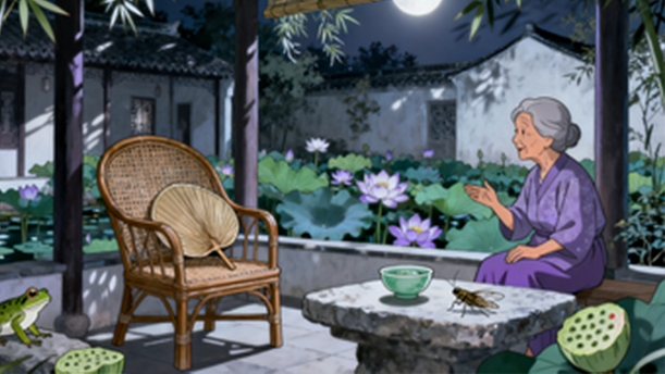 我记得有乳白色的月光映照着湖水,远山则笼罩着在乳白色的雾里。