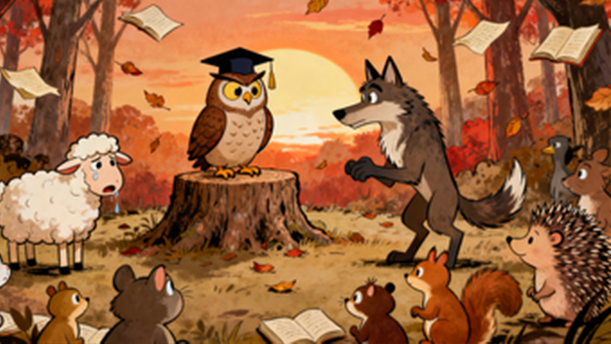 驴子跟狼的故事:驴子见狼,假装腿上受伤,对狼说:“腿上有刺,请你拔去了,免得你吃我时舌头被刺。”狼信以为真,专心寻刺,被驴子踢伤逃去,因此叹气说:“天派我做送命的屠夫的,何苦做治病的医生呢!”这当然幼稚得可笑,他不知道医生也是屠夫的一种。