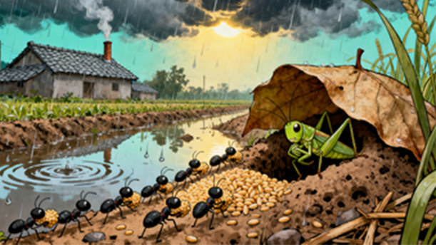 蚂蚁和促织的故事:一到冬天,蚂蚁把在冬天的米粒出晒;促织饿得半死,向蚂蚁借粮,蚂蚁说:“在夏天唱歌作乐的是你,到现在挨饿,活该!”这故事应该还有下文。据柏拉图《对话篇·菲得洛斯》(phac-drus)说,促织进化,变成诗人。照此推理,坐看着诗人穷饿、不肯借钱的人,前身肯定是蚂蚁了。促织饿死了,本身就做蚂蚁的粮食;同样,生前养不活自己的大作家,到了死后偏有一批人靠他养活,譬如,写回忆怀念文字的亲戚朋友,写研究论文的批评家和学者。