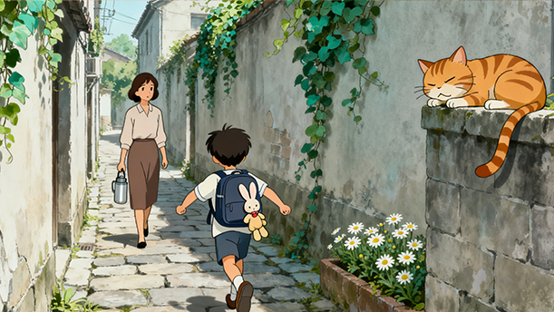 他欣然地走出长巷,很听话的既不跑也不跳,一副循规蹈矩的模样。我一个人怔怔地望着朝阳而落泪。