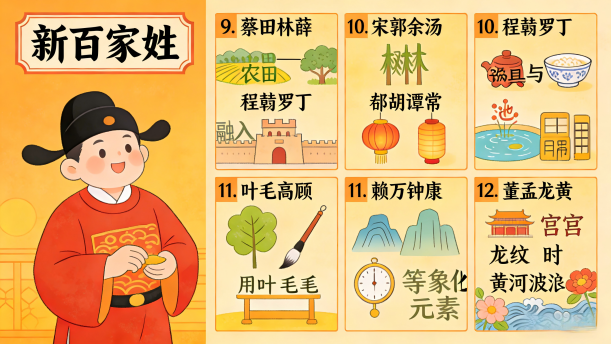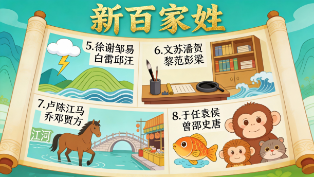 说明:这是根据1987年5月2日新华社发布的按人数多少依次排定的我国最常见100个汉族姓氏编排的。为便于学习记忆,编排时尽可能地利用了旧版百家姓的框架。用标准音背会《新百家姓》,将给你的交际带来帮助:帮你迅速回忆起别人的姓氏,便于称呼。“1-3口气背完《新百家姓》”,可做节目演出。